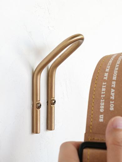 「ren ブラスUフック」は、壁にビスで取り付けるU字型フック。ピコっと壁から立ち上がるフックは、U字型なので洋服を掛けても生地を突きません。玄関やリビング、寝室、お手洗いなど色々な場所で活躍します。